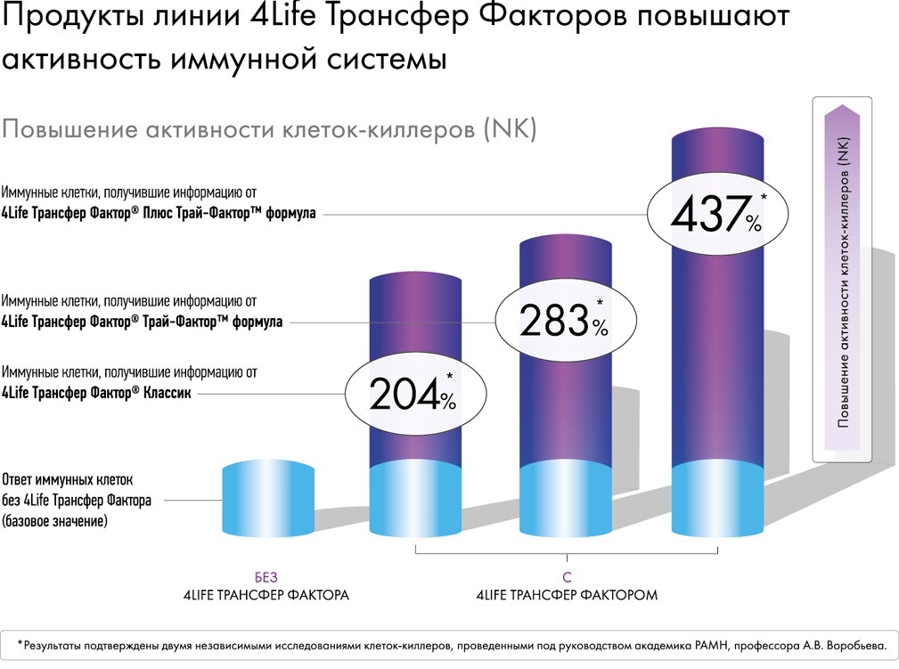 Как повышается активности клеток иммунитета при применении разных продуктов Трансфер Фактор